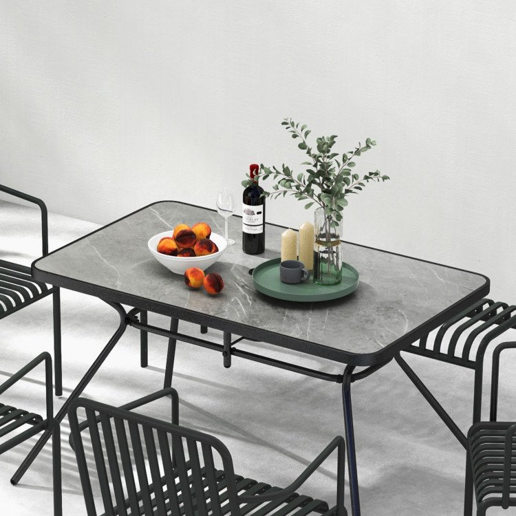 ● Stable Metal Structure: This patio dining table is firmly supported by heavy-duty metal frame, which is rustproof, anti-deformation and super sturdy. As a result, the tabletop can load up to 145 lbs.